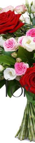 5 Red Roses, White Eustoma, Pink Spray Roses