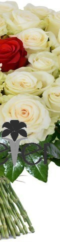 When words are simply not enough, express your feelings with the I Choose You Rose Bouquet. It features 35 pure white roses skilfully arranged into a timeless silhouette. A single red rose takes centre-stage, shining resplendently from within its halo of snow white blooms. Romantic, elegant, and effortlessly beautiful, it is a stunning floral arrangement for weddings, anniversaries, and Valentine's Day.