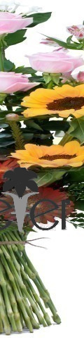 3 Sunflowers, 3 Pink Roses, 3 Red Gerbera, Pink Alstromeria, White Bouvardia